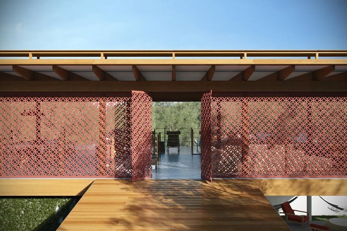 Imagem de A privacidade é garantida pelos grandes painéis inteiriços de muxarabi