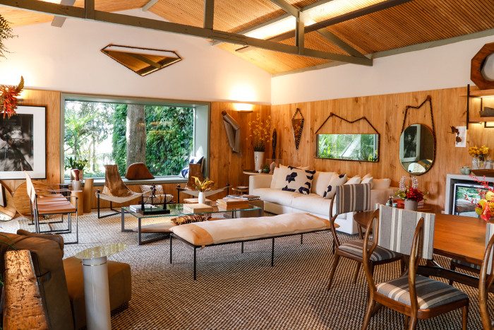 Com tema “brasilidade”, a decoração da casa sustentável ressalta as raízes nacionais com belas fotografias da Amazônia produzidas por Valdir Cruz, acessórios da cultura indígena, como cocares e panelas de barro, além de um instigante fogão a lenha. O contato com a natureza entre ambientes externo e interno aumenta a sensação de conexão com a nossa própria cultura.