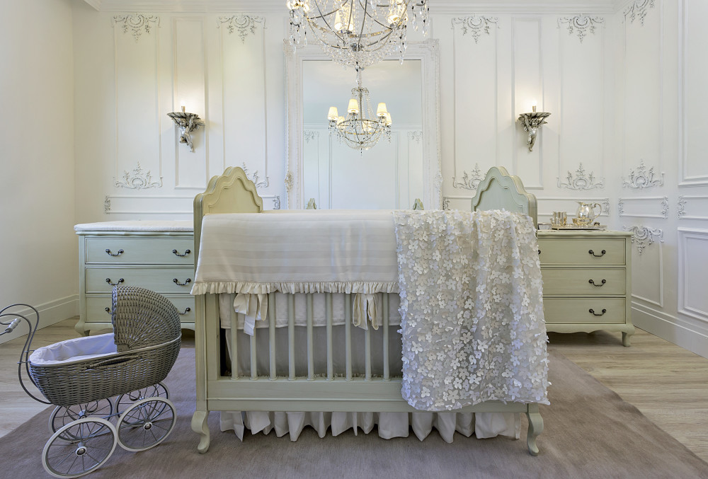 Entre os elementos decorativos, estão lustres de cristais, almofadas, arranjos florais, espelhos, molduras ornamentadas, talheres de prata, porcelanas, abajures de seda e candelabros. A valorização da simetria nesse estilo leva à utilização dos objetos de maneira duplicada no ambiente. A intenção é conseguir uma composição harmoniosa e impecável. Conheça esse estilo por meio do quarto de bebê com décor clássico para a Casa Cor São Paulo 2016.