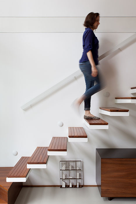O uso de estrutura metálica e paredes em drywall na construção ofereceu um uso racional e limpo do espaço. Até mesmo a manutenção tornou-se mais prática, segundo as arquitetas Clara Reynaldo e Cecilia Reichstul. Alguns recursos estilísticos também foram usados para criar elementos interessantes, como a escada com degraus engastados na viga, que desaparecem na parede e dão a impressão de flutuar. A ideia da estrutura metálica também impede os pilares de interromper a fluidez dos ambientes, preservando a sensação de amplitude na integração entre os ambientes.