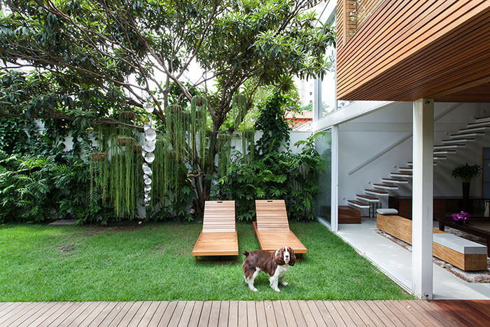 Todos os espaços são separados por jardins e integrados por decks. Eles garantem insolação, ventilação e permeabilidade do solo. O terceiro bloco da construção abriga as áreas de lazer, com churrasqueira e sala de televisão, unindo modernidade e conforto para receber visitas.