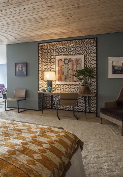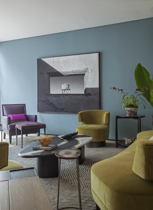 Celebrando a recente parceria com a renomada designer americana Holly Hunt, especialista na criação de móveis de luxo, o mobiliário e os tecidos da marca adornam o espaço, lado a lado de peças indianas trazidas pela profissional para celebrar o encanto e a imponência dos detalhes orientais.