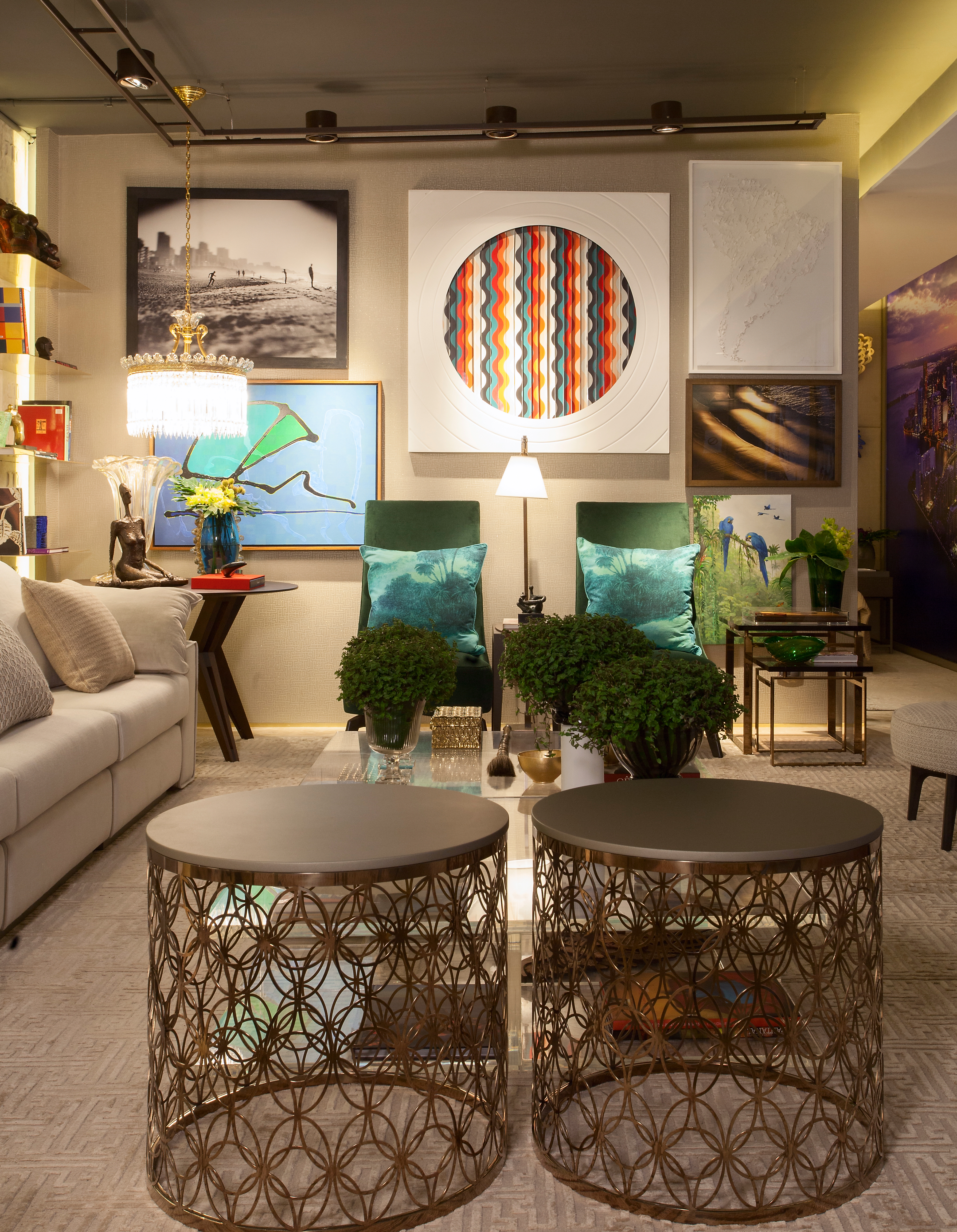 O espaço reúne peças de um time de peso, começando pela artista plástica Carmem Gusmão, além da curadoria das obras, feita pela marchand e expert em arte, Bianca Cutait. Outros artistas: Hamilton Aguiar e Rubem Robierb. Há itens nacionais e internacionais, distribuídos no mobiliário, nos acessórios de decoração e acabamentos. O objetivo é unificar a cultura das duas localidades: Brasil e Miami. Há três anos, Myrna tem uma filial de seu escritório em Miami e, com o crescimento da busca de moradias na cidade, por brasileiros, aposta em bons negócios por lá.