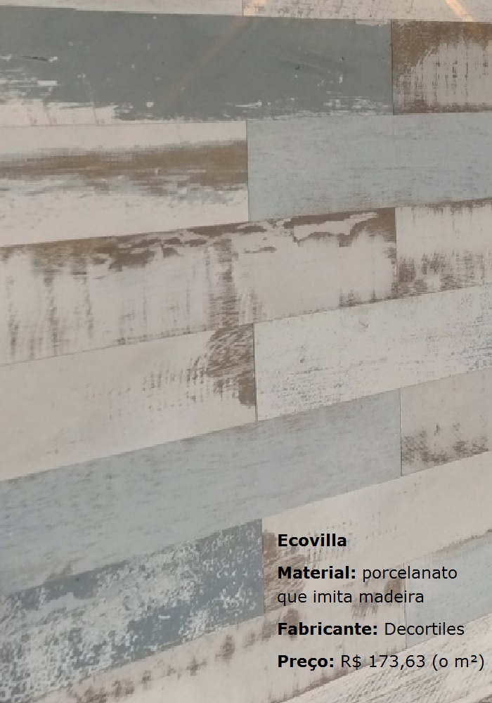 Porcelanato que imita madeira de demolição.