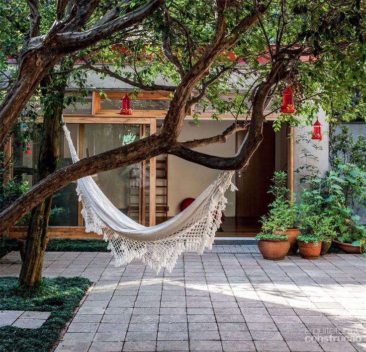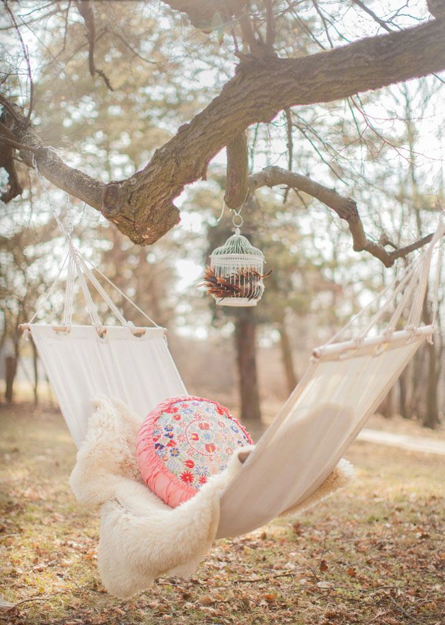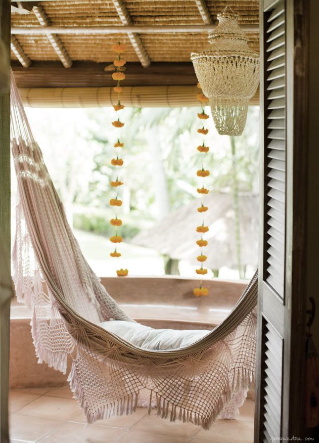 10. Estilo Campestre. No meio das árvores, a rede tradicional, de tecido de algodão na tonalidade cru, é um convite irrecusável a uma boa soneca.