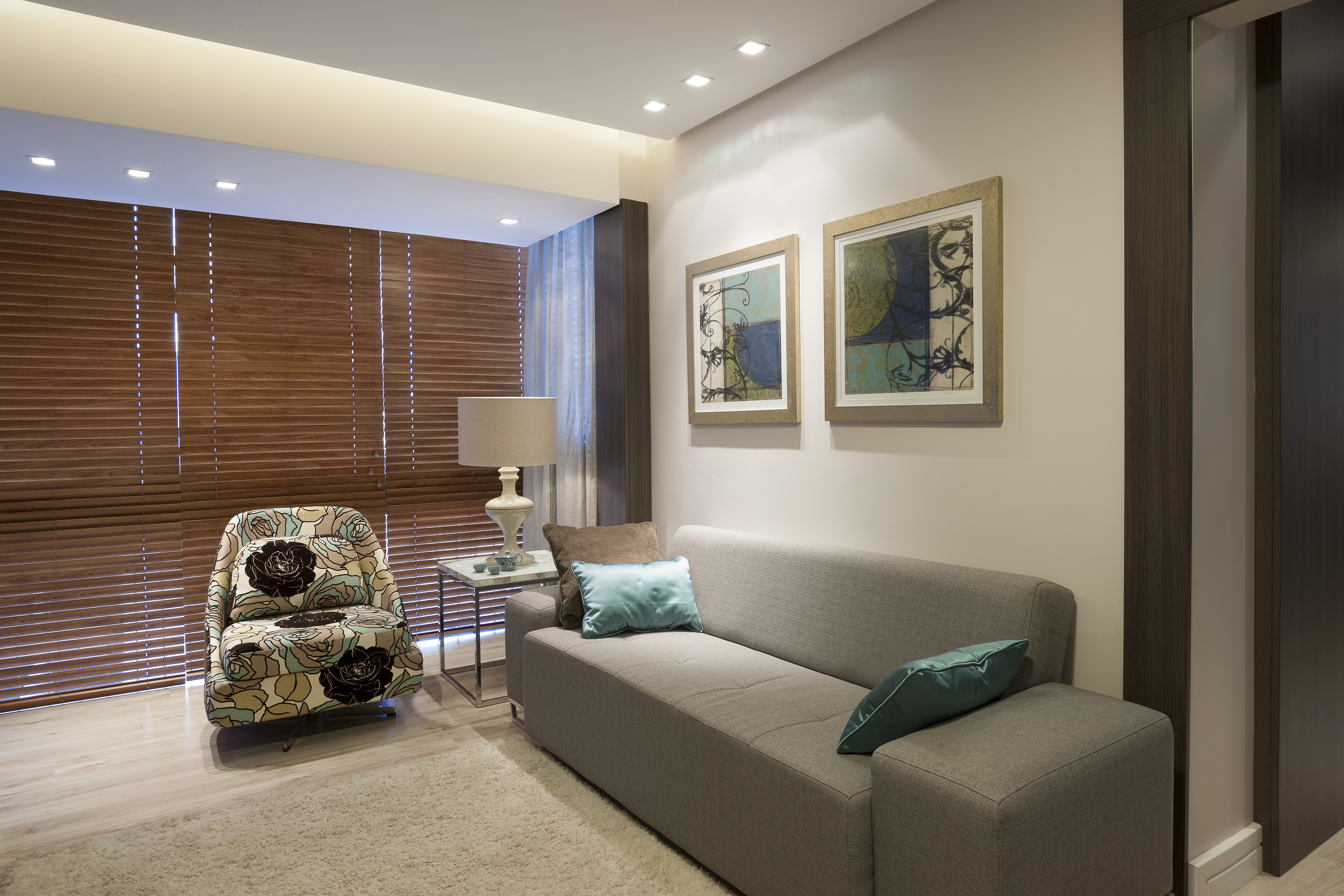 O projeto de iluminação prevê várias cenas, criando atmosferas aconchegantes para a moradora. Luzes pontuais ressaltam objetos decorativos e valorizam revestimentos especiais aplicados nas áreas de living e jantar. As sancas no forro de gesso iluminam discretamente. No quarto, iluminação em LED foi usada na cabeceira da cama, dando um toque a mais na decoração.
